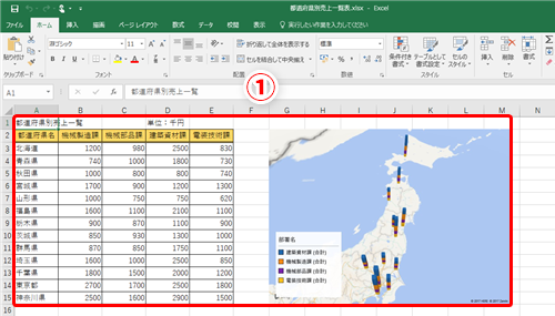 地理的位置(国名、都市名、緯度経度)と数値データを含むExcelテーブルが必要です。