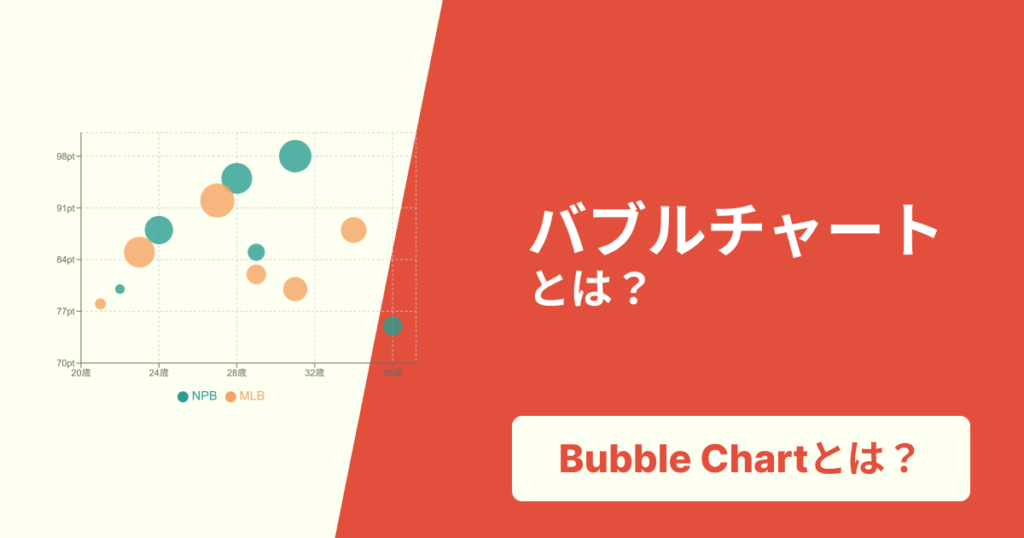 X軸とY軸は通常の散布図のように2つの変数を示し、バブルのサイズは3つ目の変数(例:売上高、数量)を表します。これにより、3次元のデータを2次元のグラフ上で効率的に分析可能です。