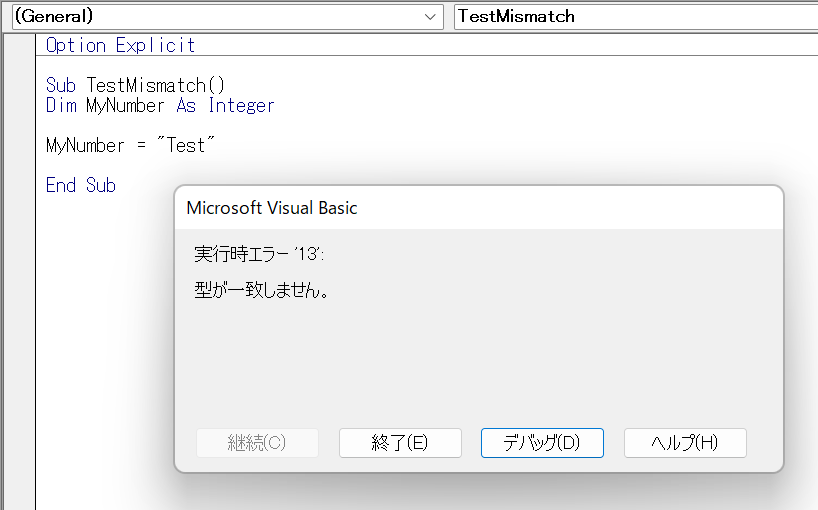 「データの型が一致しません」エラーはどのような場合に発生しますか?
