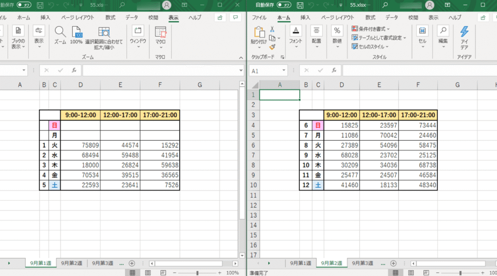 | 新しいウィンドウを開く | 同一のワークブックのコピーを別ウィンドウで開く。 | 同じブックの離れたシート(例:概要シートと詳細データシート)を並べて参照。 |