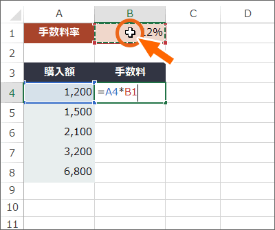 - F4キーを押して、必要な参照タイプ(絶対参照など)に変更します。