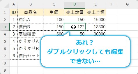 ダブルクリック編集ができない場合、どのようにセルを編集すればよいですか?