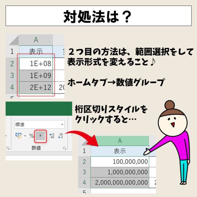 ExcelでE+12の表示を解除するには?