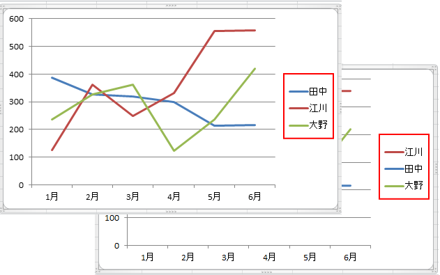 1. グラフ内の凡例をクリックして選択状態にします。凡例の周囲に選択ハンドルが表示されます。