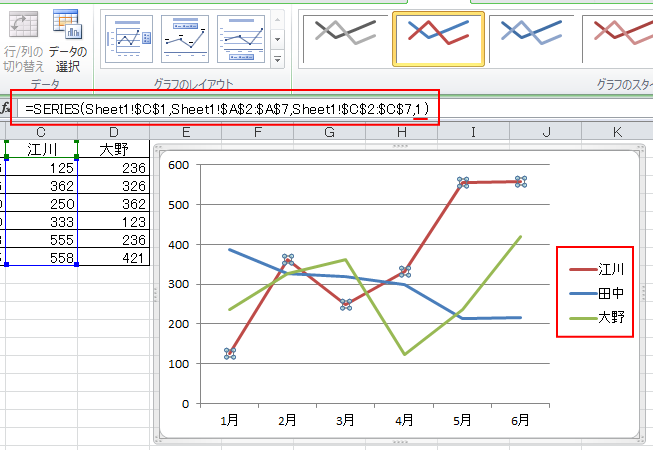 エクセルのグラフの系列の順序はどうやって変えますか?