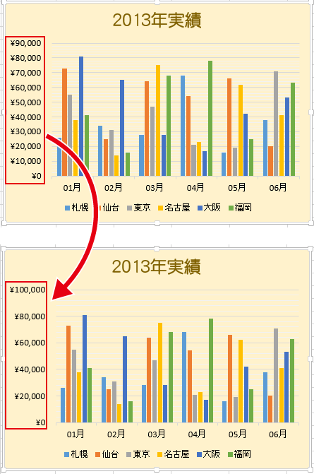 Excelグラフの「目盛り」の間隔を変更してスッキリ見せる方法