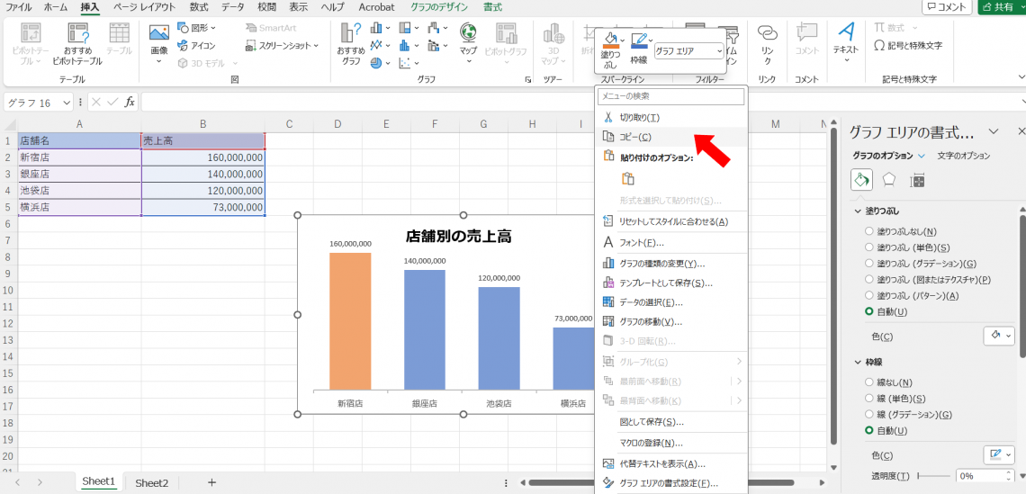 グラフを右クリックし、「図として保存」を選択して、希望の形式で保存できます。