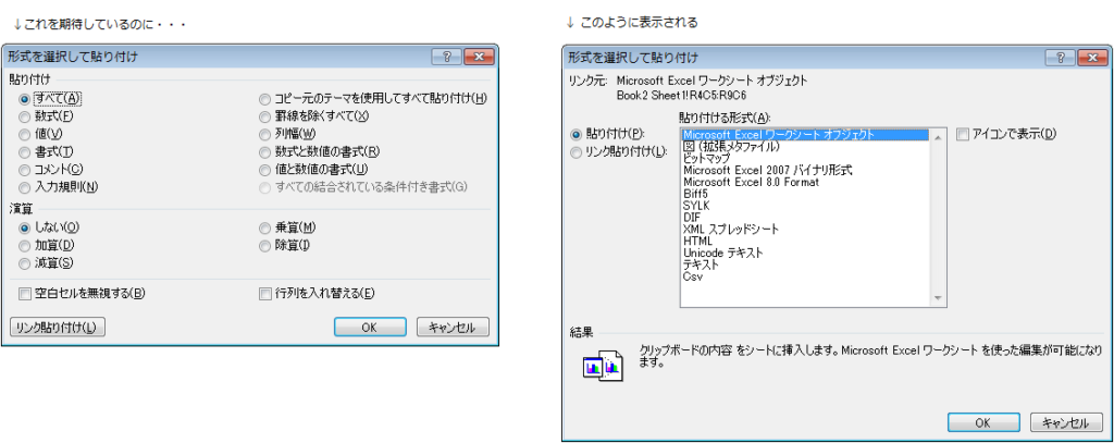 「形式を選択して貼り付け」のオプションが不足する原因と対処法