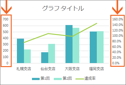 | 第2軸(補助軸) | 尺度の異なるデータを同じグラフで比較可能にする | データ系列を右クリック → データ系列の書式設定 → 系列のオプション |