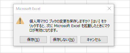 編集時には、このブックが常にバックグラウンドで実行されている点に注意が必要です。VBEでコードを修正した後は、標準モジュールと同様に上書き保存(Ctrl + S)を行います。Excelを終了する際、個人用マクロブックへの変更を保存するかどうかのダイアログが表示されるため、必ず「保存」を選択してください。
