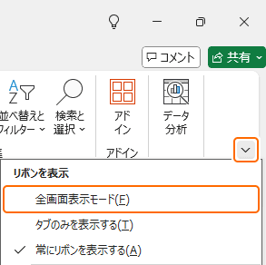 リボンの最小化と全画面表示の違い